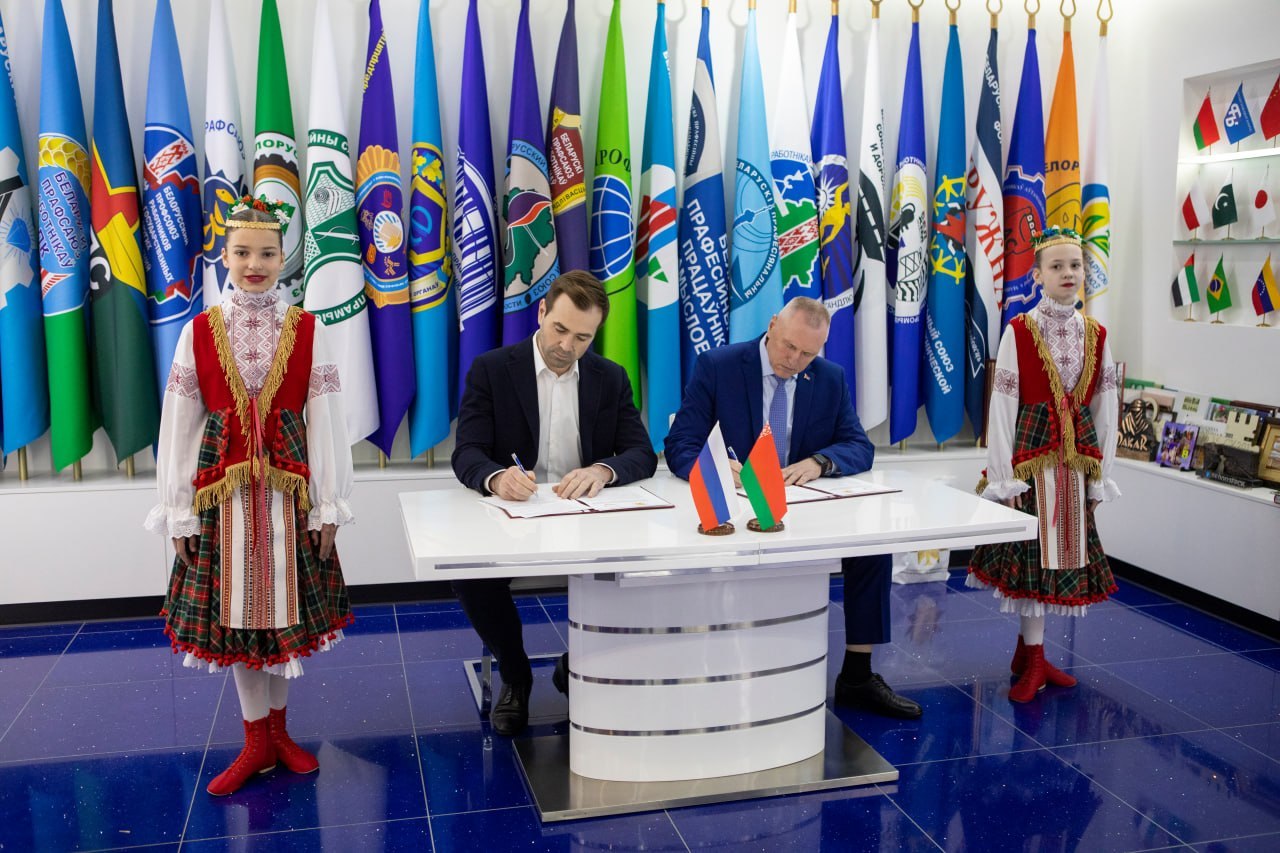Председатель Общероссийского профсоюза работников физической культуры, спорта и туризма РФ Михаил Гусев и председатель Белорусского профсоюза работников культуры, информации, спорта и туризма Михаил Портной подписали Меморандум о сотрудничестве между Профспорттуром и Белорусским профсоюзом работников культуры, информации, спорта и туризма. Документ должен стать краеугольным камнем в налаживании связей не только на профсоюзном, но и на межгосударственном уровнях. Меморандум предусматривает не только работу по укреплению партнерских и дружеских связей, но и создание платформы для профессионального общения, обмена опытом и повышения квалификации работников спортивной и туристической отраслей, а также оказание содействия в пропаганде здорового образа жизни и развитии массового спорта.