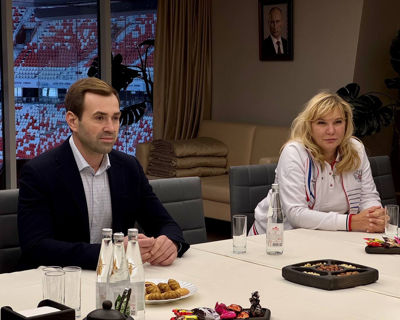 Председатель Профспорттура Михаил Гусев провел встречу с министром спорта Республики Мордовия Никитой Ларьковым и представителем спортивного профсоюза в регионе Виталием Бояровым.