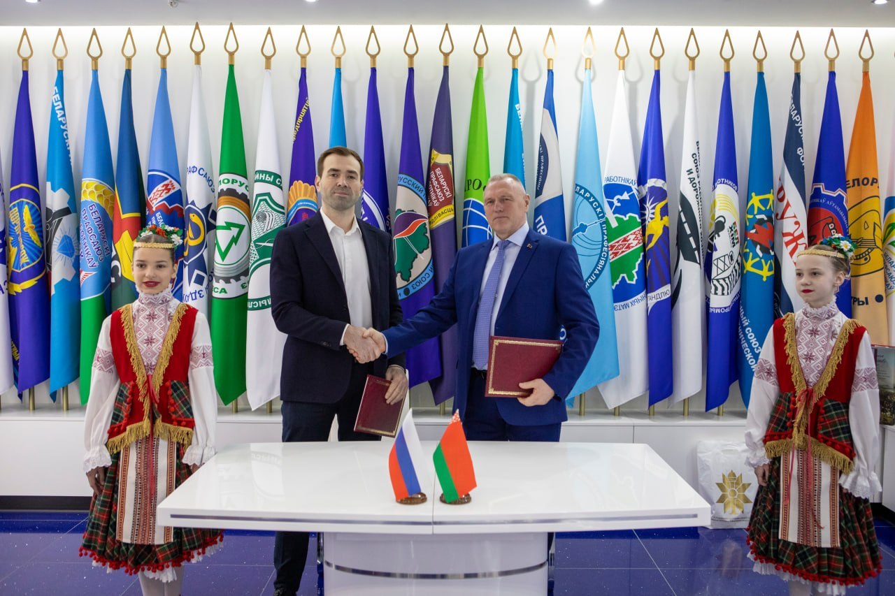 Председатель Общероссийского профсоюза работников физической культуры, спорта и туризма РФ Михаил Гусев и председатель Белорусского профсоюза работников культуры, информации, спорта и туризма Михаил Портной подписали Меморандум о сотрудничестве между Профспорттуром и Белорусским профсоюзом работников культуры, информации, спорта и туризма. Документ должен стать краеугольным камнем в налаживании связей не только на профсоюзном, но и на межгосударственном уровнях. Меморандум предусматривает не только работу по укреплению партнерских и дружеских связей, но и создание платформы для профессионального общения, обмена опытом и повышения квалификации работников спортивной и туристической отраслей, а также оказание содействия в пропаганде здорового образа жизни и развитии массового спорта.